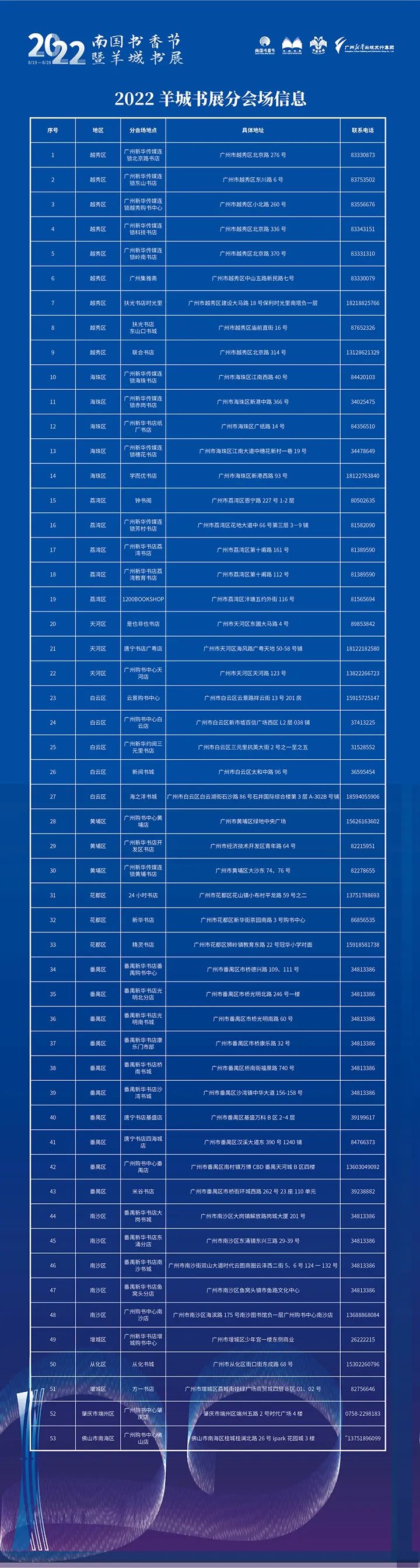 ●在扶光書(shū)店中環(huán)店“用文學(xué)戲劇品味生活”、在學(xué)而優(yōu)書(shū)店用“學(xué)術(shù)人文分享生活點(diǎn)滴”、在白云區(qū)好好學(xué)云景購(gòu)書(shū)中心“邂逅國(guó)風(fēng)”、在廣州購(gòu)書(shū)中心黃埔店一起“趣”灣區(qū)、在番禺新華書(shū)店光明南書(shū)城用“動(dòng)漫創(chuàng)意交流文化”、在廣州購(gòu)書(shū)中心南沙店領(lǐng)略“灣區(qū)創(chuàng)新引擎”、在從化書(shū)城“閱讀新時(shí)代”。