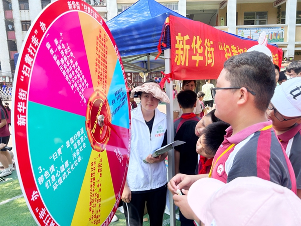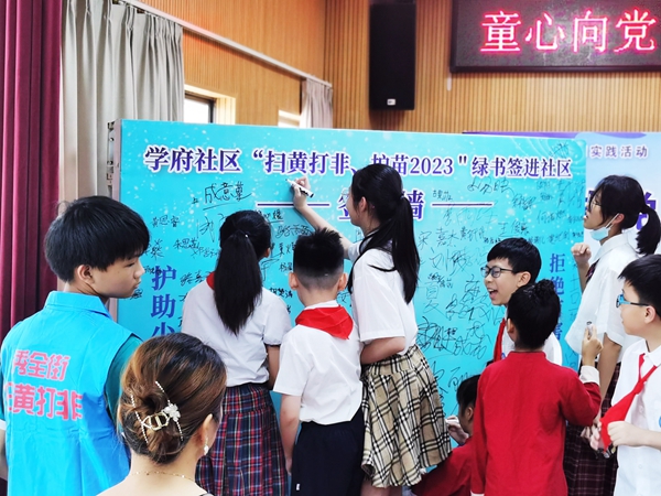 花都區(qū)新華街道以“掃黃打非”知識問答大轉(zhuǎn)盤、“掃黃打非”智慧投手小游戲、觀看宣傳展板、派發(fā)宣傳單張等方式,趣味普及“掃黃打非”相關(guān)知識,提高學(xué)生們自覺抵制有害出版物、色情網(wǎng)絡(luò)游戲侵蝕的自控能力,現(xiàn)場派發(fā)“掃黃打非”宣傳單張及宣傳品80余份。秀全街道組織轄區(qū)內(nèi)120多名中小學(xué)生演繹了《奮斗吧、少年》《盛世中華》《少年強(qiáng)則國強(qiáng)》《青春正朝陽》等朗誦、歌唱、舞蹈、演奏等文藝節(jié)目。同時開展了《“掃黃打非”知多少》講座與知識問答,以此加強(qiáng)同學(xué)們對“掃黃”“打非”的認(rèn)識,引導(dǎo)學(xué)生們在簽名墻上留下自己的名字,表達(dá)堅決拒絕有害信息和有害出版物的決心。