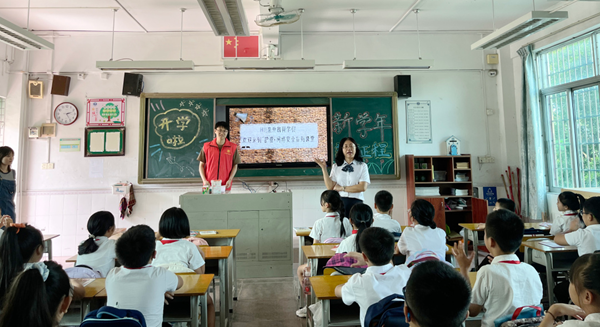 ▲廣東第二師范學院實驗小學開展“掃黃打非·第一課”宣講