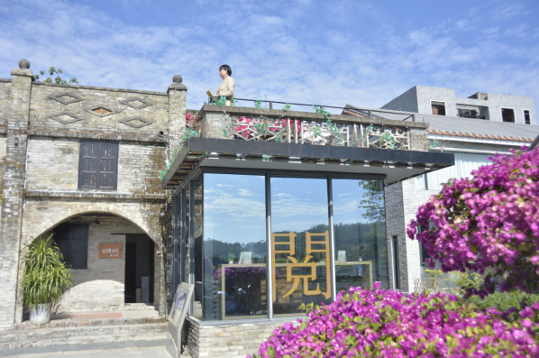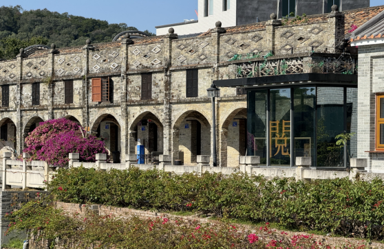 舊騎樓古樸沉穩(wěn),勒杜鵑花團錦簇,玻璃屋前繁體“閱”字醒目地映入眼簾,似乎在提醒游客,在這里,既能閱盡浩瀚知識,亦能閱見古今風采。港頭村“花城書房·農(nóng)家書屋”,一座家門口的文化會客廳,讓厚重的文風在古街巷和民居中活色生香地扎根、生長,惹人陶醉其中。
